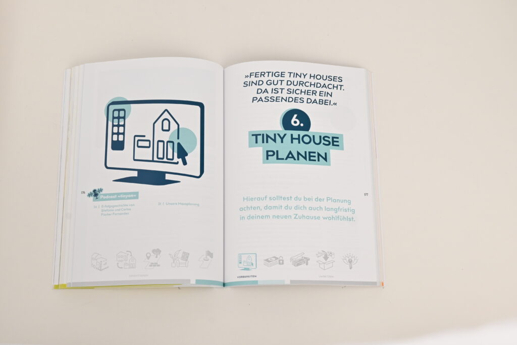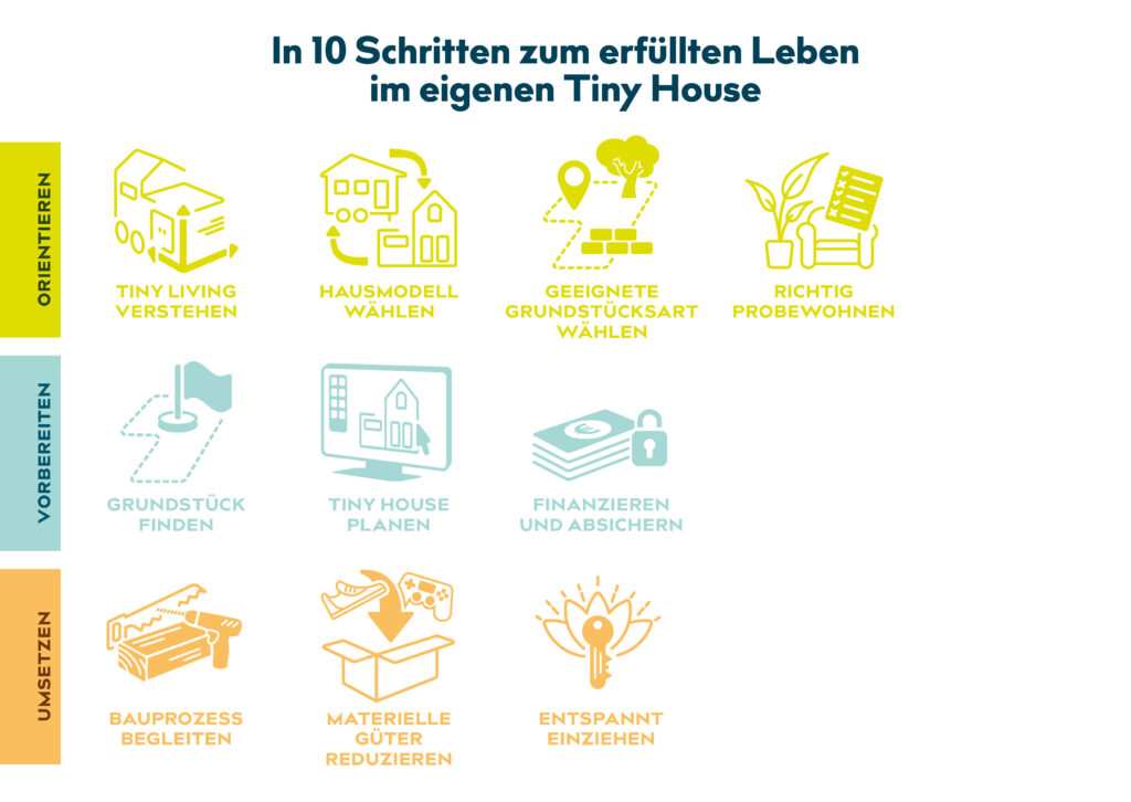Mit unserem Buch begleiten wir dich Schritt für Schritt zum erfüllten Leben im Minihaus: